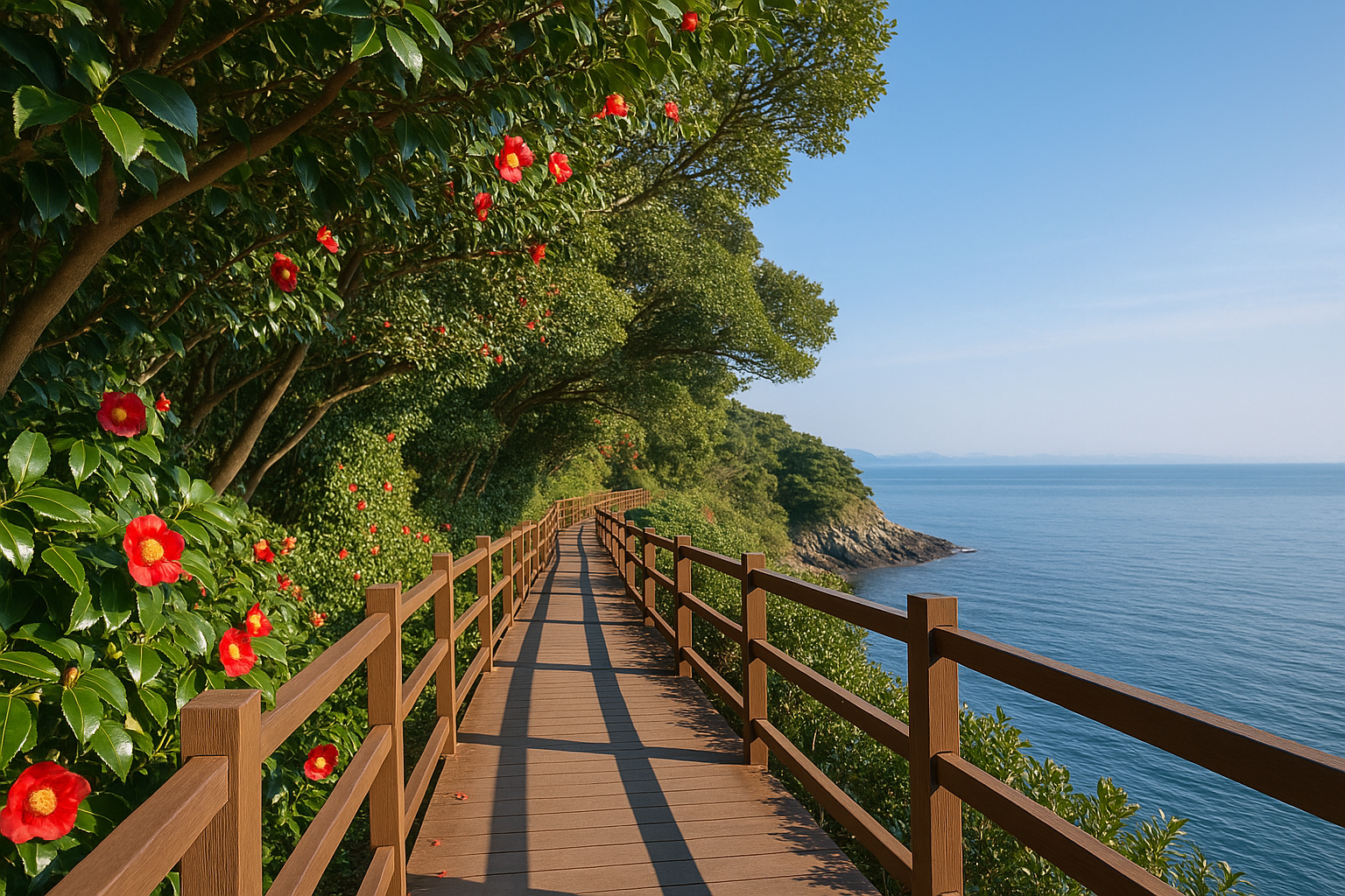 여수 오동도는 한겨울에도 푸른 동백나무 숲이 짙은 녹음을 유지하는 남해안의 대표적인 섬이자, 12월 국내여행지로 손꼽히는 걷기 명소이다. 계절이 겨울로 접어들면 해안 절벽 아래로는 잔잔한 파도가 흰 포말을 밀어 올리고, 섬 전체를 뒤덮은 동백나무에서는 붉은 꽃망울이 서서히 피어나 섬세한 색 대비를 만든다. 육지와 섬을 잇는 방파제 산책로를 따라 걸으면 차가운 겨울바다 공기 속에서도 남해 특유의 온화한 기운이 느껴지고, 갈매기와 파도 소리가 배경이 되어 걷는 이의 속도를 자연스럽게 늦춘다. 오동도는 섬의 규모가 크지 않아 가볍게 한 바퀴를 돌며 산책하기에 알맞고, 구석구석 놓인 전망대와 데크길이 잘 정비되어 있어 남녀노소 누구나 부담 없이 즐길 수 있다. 특히 12월부터 이른 봄까지 이어지는 동백 개화 시기에는 초록 잎 사이로 붉은 꽃이 맺히고 떨어지기를 반복하며 계절의 흐름을 시각적으로 보여주는데, 이는 카메라에 담기 좋은 풍경일 뿐 아니라, 겨울바다 여행에 낭만을 더해 주는 상징적 장면으로 기억된다. 이러한 이유로 여수 여행을 계획하는 이들에게 오동도 동백꽃 산책은 단순한 섬 방문을 넘어, 바다와 숲과 꽃을 동시에 만나는 입체적인 겨울 힐링 코스로 강력히 추천할 만하다.